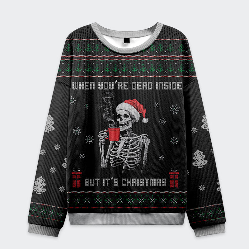 Tokyo-Tiger Dead Inside Festive Outside: Christmas Vibes Christmas Ugly Sweatshirt