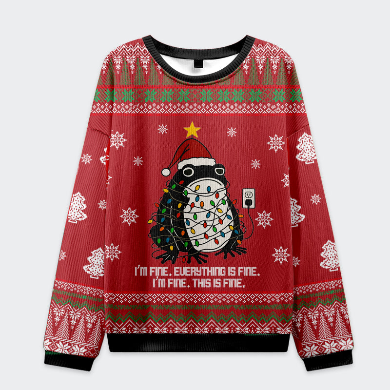 Tokyo-Tiger Funny Frog Lights-Everything Is Fine Christmas Ugly Sweatshirt