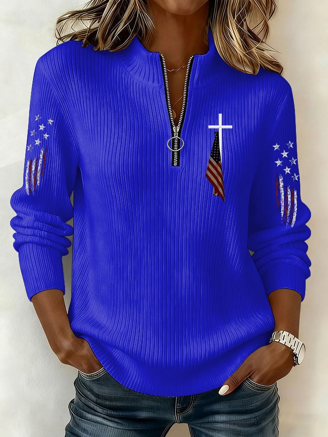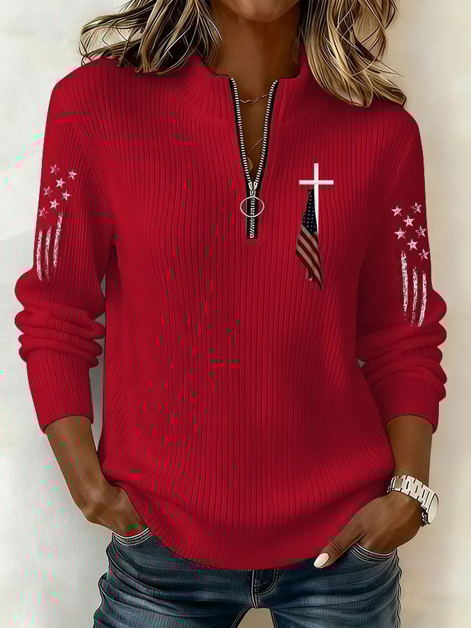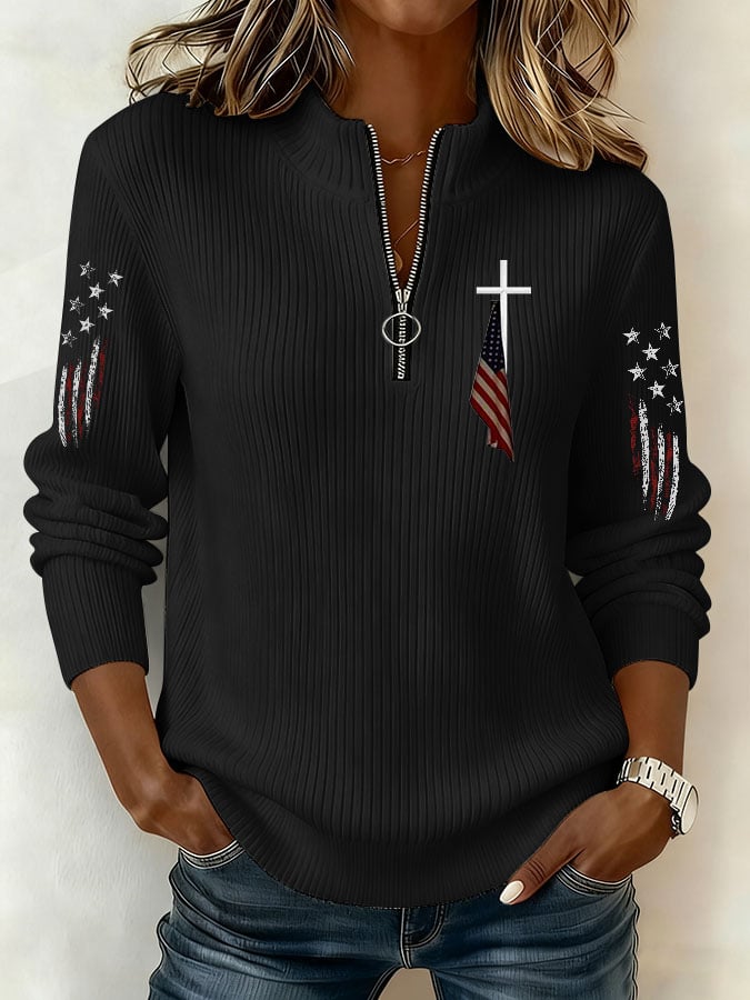 Women's Cross And Flag Print Sweatshirt