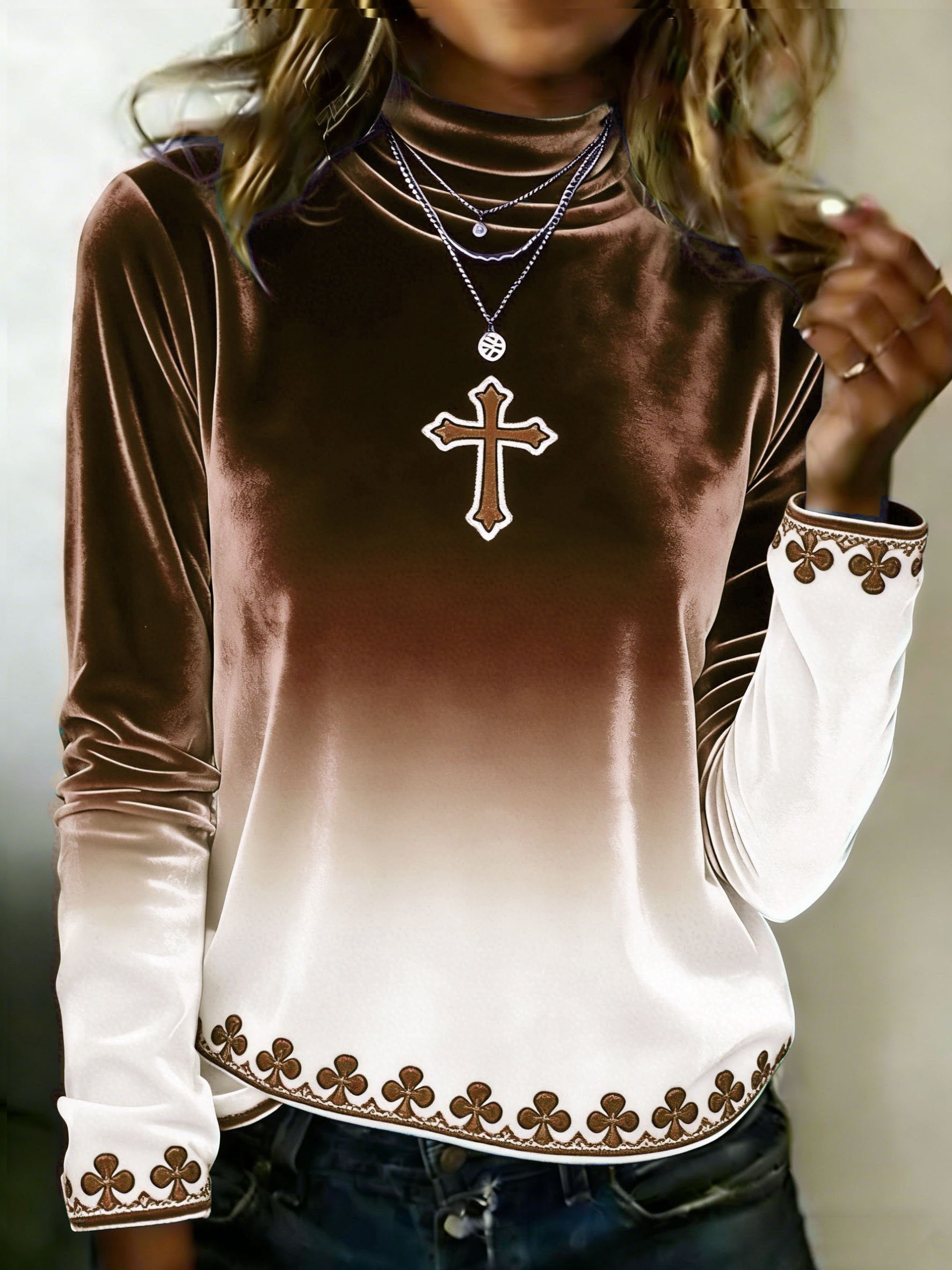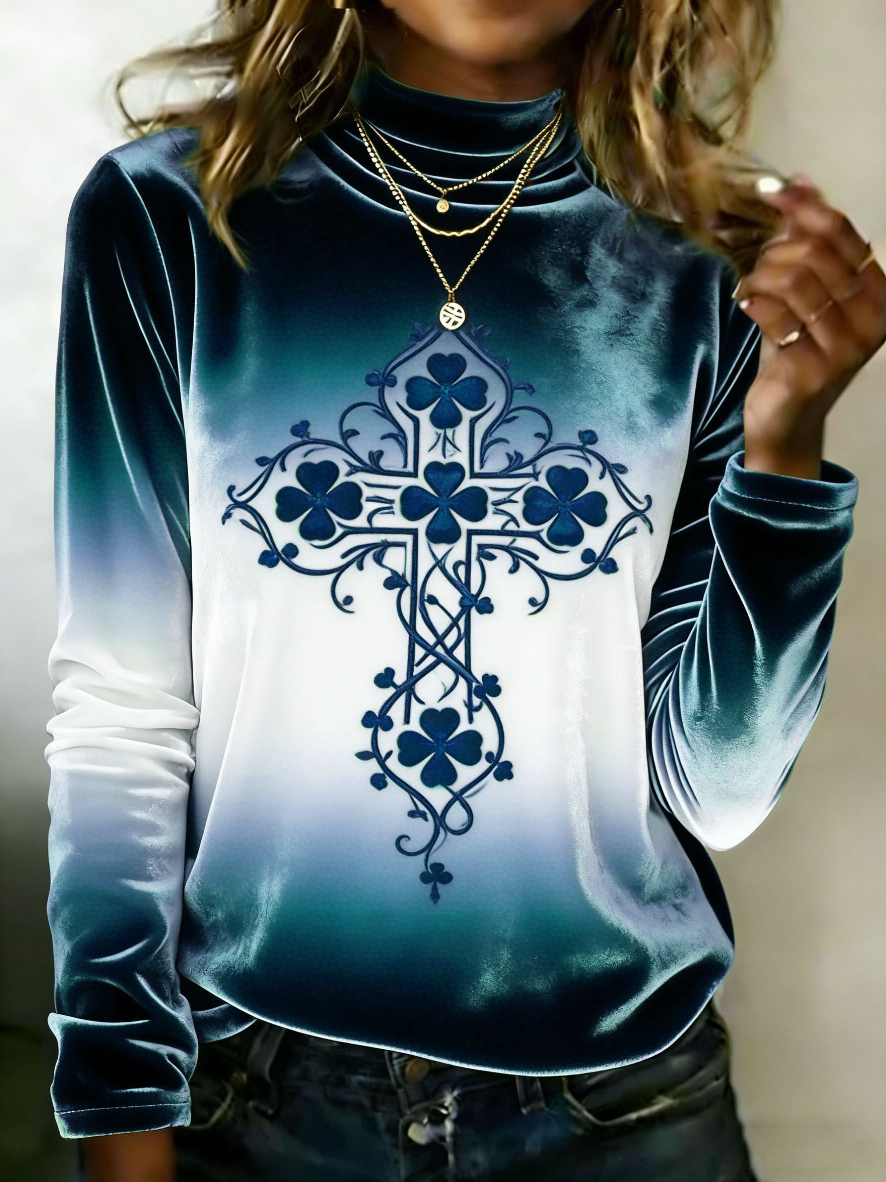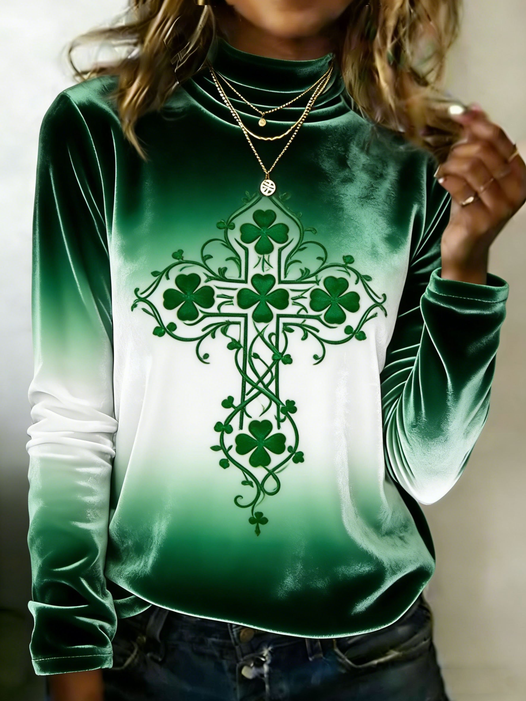 Women's Autumn/Winter St. Patrick's Day Shamrock Print Velvet Casual Top