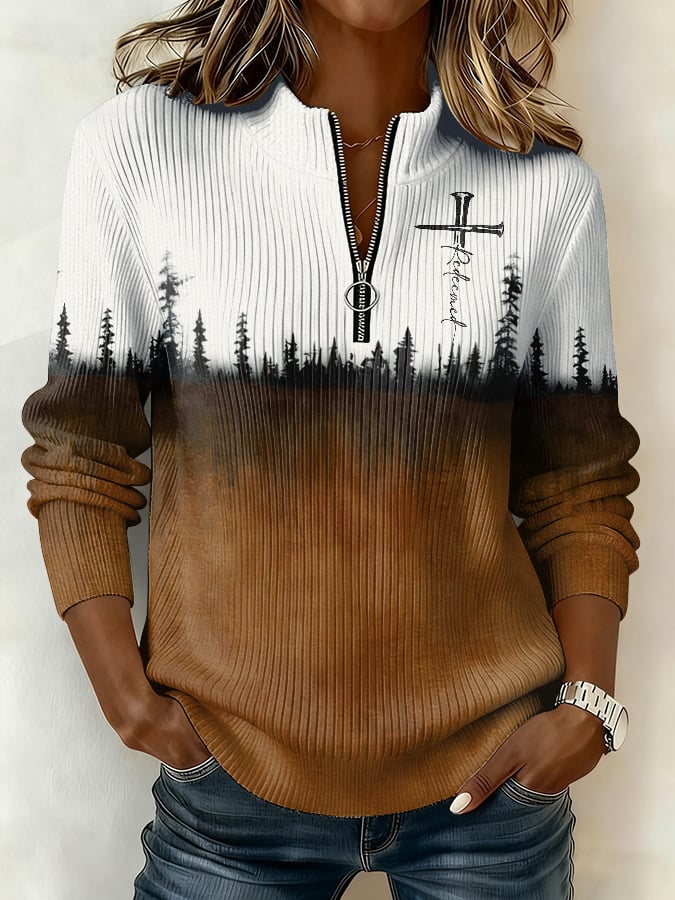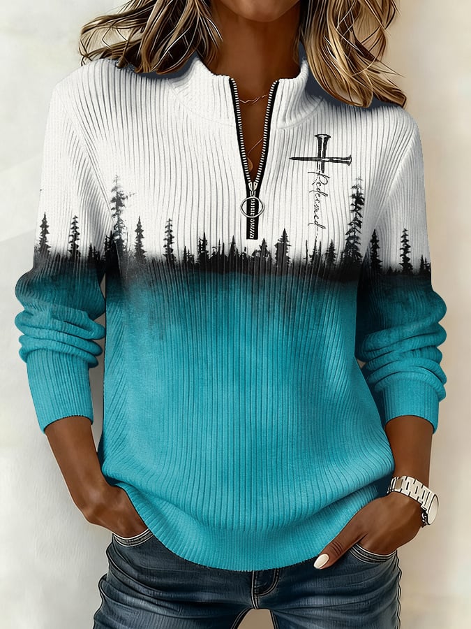 Women's Winter Faith Print Stand-Up Collar Zipper Top