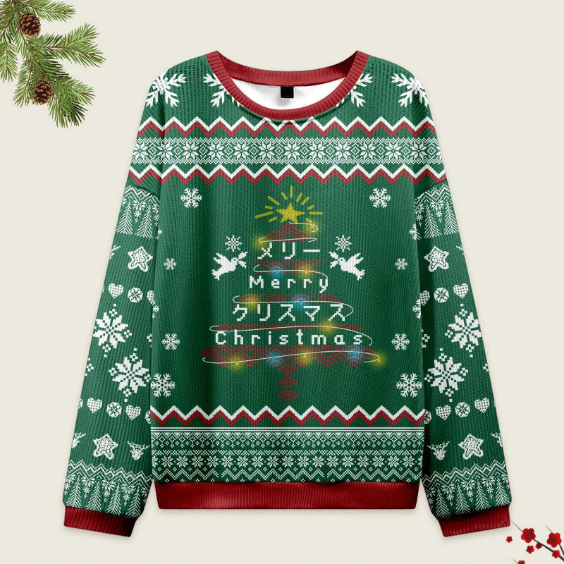 Tokyo-Tiger Christmas Tree Japanese Green Christmas Ugly Sweatshirt